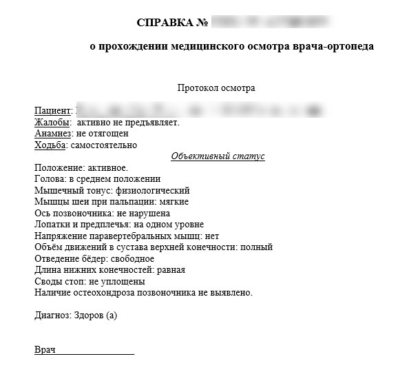 Справка от ортопеда